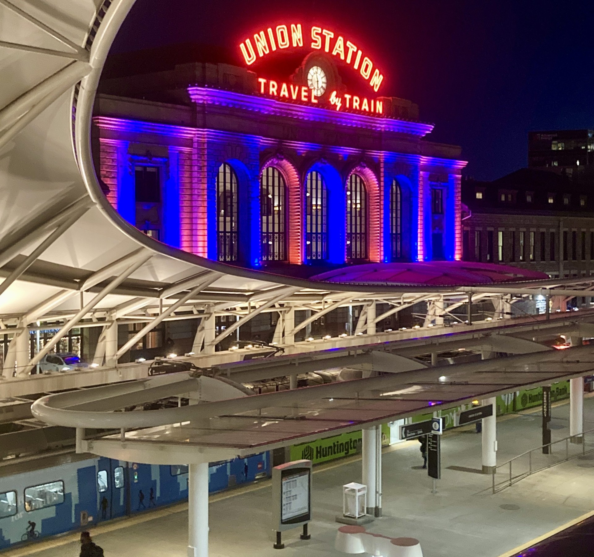 After reclaiming Ant’s wagon and clearing customs without fuss, we ride the accessible A-Line train into Denver’s Union Station, a neoclassical beauty topped with unmissable neon.