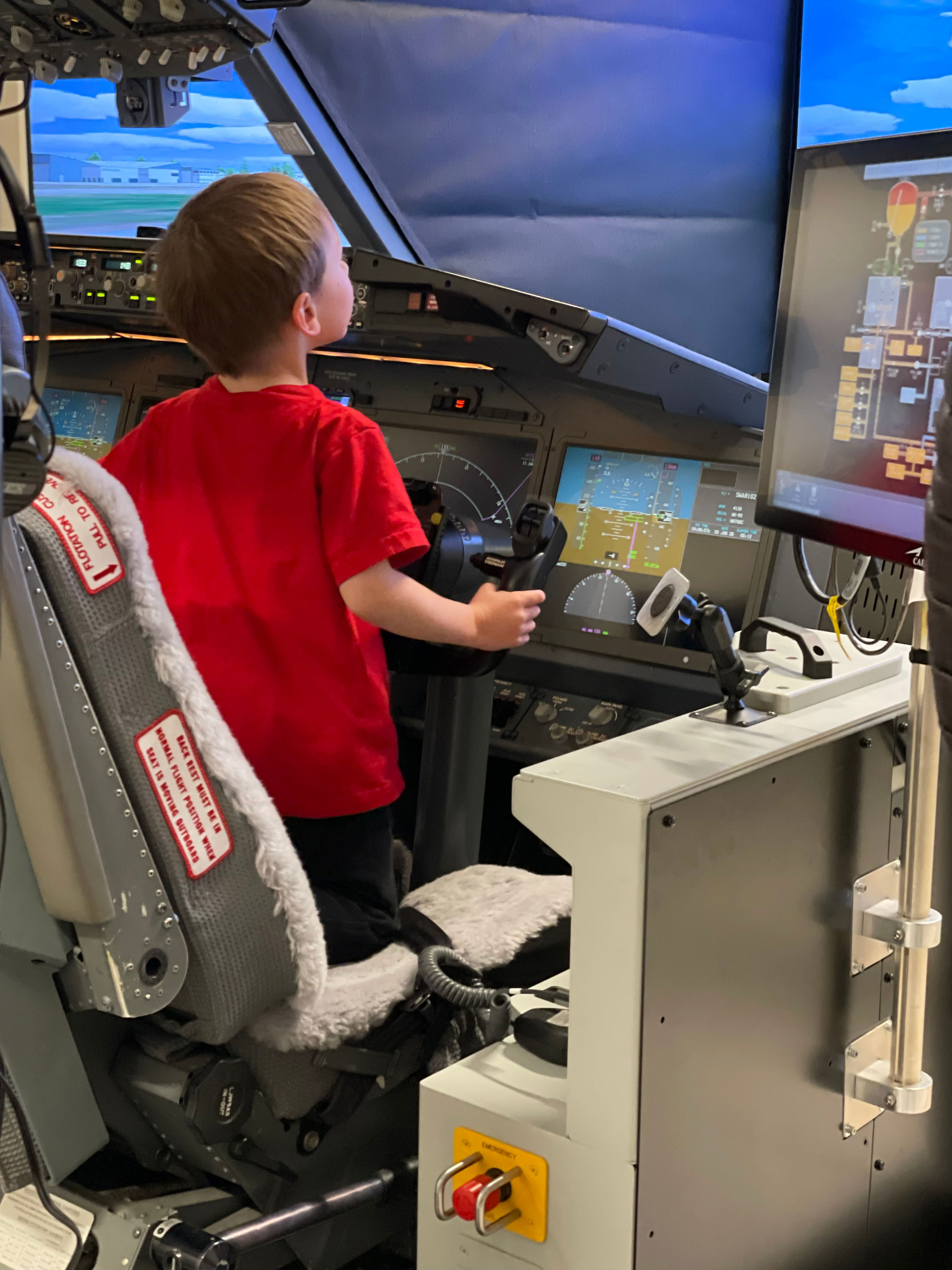 While visiting, William connected with Southwest employees, such as a flight simulator pilot, and had the opportunity to sit inside a flight simulator.