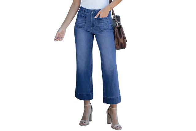 Luvamia’s wide-leg cropped jeans are like a traveler’s dream—comfy enough for long trips but stylish enough for office days. The high waist and patch pockets provide a shape-enhancing look, while the cropped inseam shows off your shoes and makes them especially petite-shopper friendly. Slip on a comfortable yet fashionable pair of sneakers and you’re instantly desk-to-airport ready. -