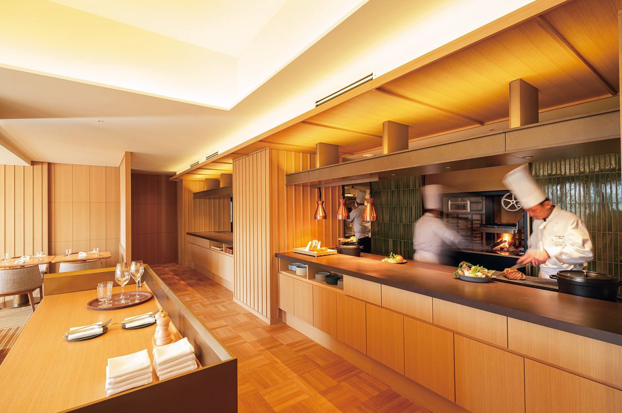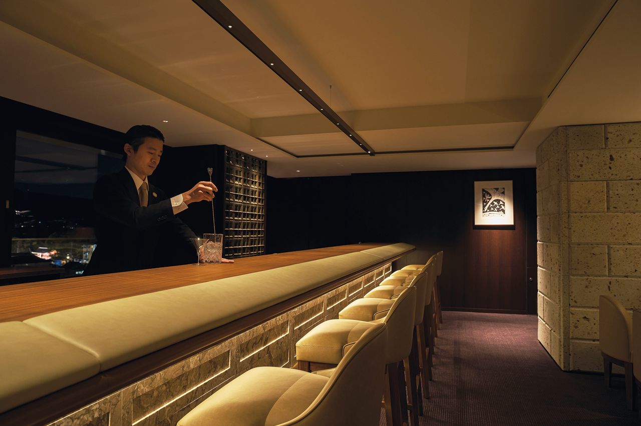 The Imperial Hotel in Kyoto features two dining establishments and a bar: Yasaka, offering meals throughout the day, Ren specializing in French cuisine, and the Old Imperial Bar, known for its sophisticated cocktails prepared with great attention to detail. “We don’t require a Japanese restaurant since visitors here already possess an understanding of Japanese food and culture,” Sakata explains.
