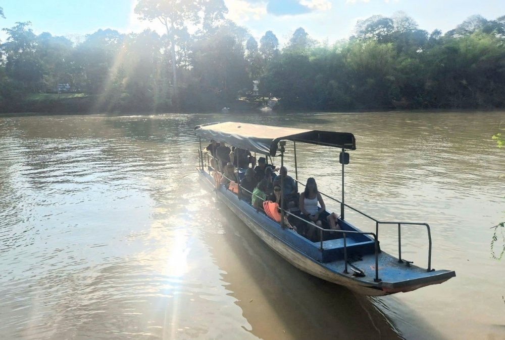 You don’t enter Cat Tien National Park through a gate; instead, you enter by travelling across a river. When you arrive at the park entrance area, you park on one side of the Dong Nai River. To actually enter the forest zone, you need to take a small boat across. It only takes a few minutes, but it immediately changes the atmosphere. The noise of the road fades, and the dense green wall of jungle becomes the focus. That short boat ride makes the experience feel intentional as you’re not just driving into a park, you’re crossing into it. The ferry runs regularly and is simple and inexpensive. Within minutes of stepping off the boat, the forest surrounds you with its tall trees, wide dirt paths, and a noticeable drop in motorcycle noise.