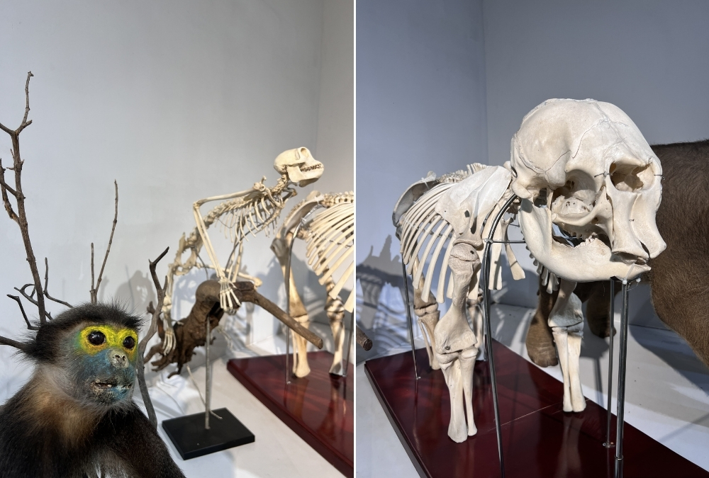 Cat Tien is known for its biodiversity. While you don’t often see large mammals wandering across the road during the day, you can see smaller wildlife and visit the park’s animal museum. The museum provides context about the species that inhabit the area – including endangered animals and conservation efforts. It’s modest in size but informative. Seeing preserved specimens and educational displays helps you understand what exists beyond what you immediately see. We also saw animals within conservation areas linked to wildlife protection programs. Knowing that Save Vietnam’s Wildlife operates nearby made that part of the experience more meaningful.
