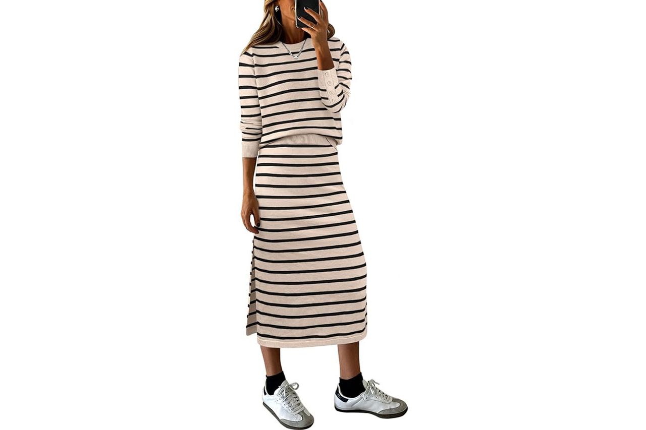 Matching sets are my favorite travel cheat code, and this skirt set might be the chicest one in my cart right now. The lightweight long-sleeve sweater and midi skirt combo looks elevated but feels secretly comfortable, making it ideal for travel days when you still want to snap some pictures for Instagram. Reviewers have even raved about how many compliments they’ve gotten wearing it.