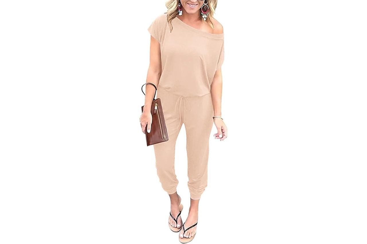 A one-piece outfit that still gives options? Say less. This off-shoulder romper has jogger-style bottoms and short sleeves, making it comfortable enough for daytime exploring and easy to dress up with a blazer for nighttime. It has over 55,000 reviews, and one shopper even said it earned a spot in their Europe capsule wardrobe packed into a duffel without wrinkling.