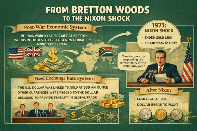 The relationship between the rand and the US dollar has evolved dramatically over the past six decades. When the rand was introduced in 1961, it was part of the global fixed exchange rate framework established after World War II under the Bretton Woods system. At that time, two rand equaled one British pound, and the pound itself was fixed to the US dollar.