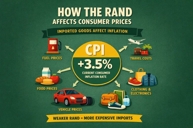 A depreciation of about 4.4%, which is roughly the movement from R15.90 to R16.60, could add approximately 0.7 percentage points to inflation over time. This occurs as higher import costs filter through supply chains, affecting various sectors of the economy.