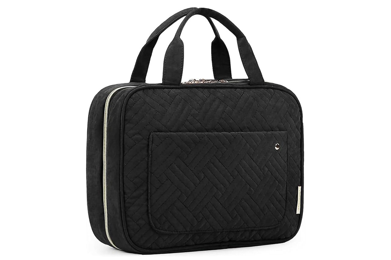 Finally, theBagsmart Toiletry Bagkeeps her makeup and skincare items neatly organized. With four compartments, it makes it easy to find what she needs. The built-in metal hook lets her hang it on the bathroom door, and the waterproof interior prevents leaks.