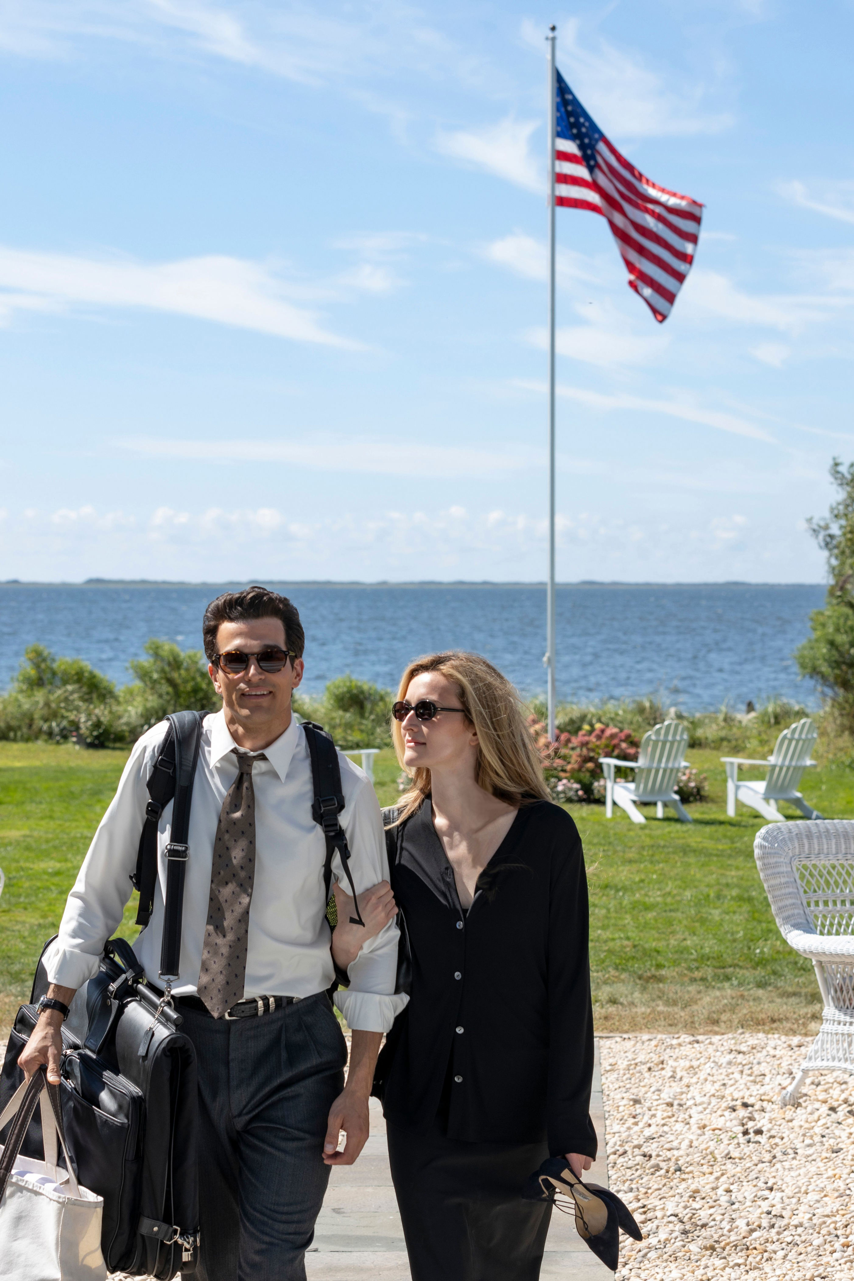 For the fictional Hyannis Port, Bellport on Long Island served as a stand-in. “We found a house that almost mirrored the real thing, but it wasn’t quite right,” DiGerlando said. “We ended up building the dining room and adding a gravel driveway to be more accurate.”