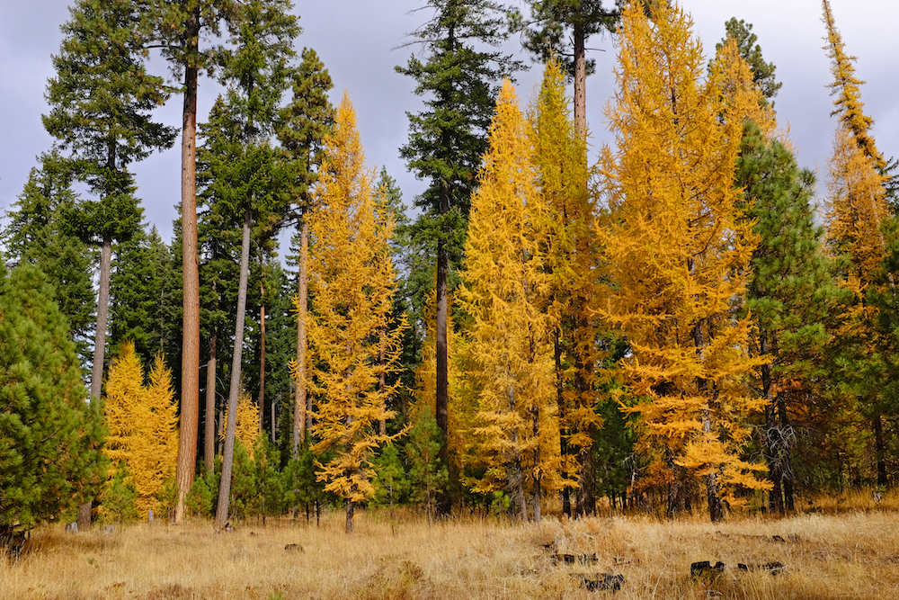 You’ll find gorgeous stands of golden orange trees in the nearby Metolius Natural Area in the Oregon Cascade Mountains. A stunning rainbow of reds, yellows, oranges, greens, and browns blankets the forest floor and lines hiking paths and sidewalks.